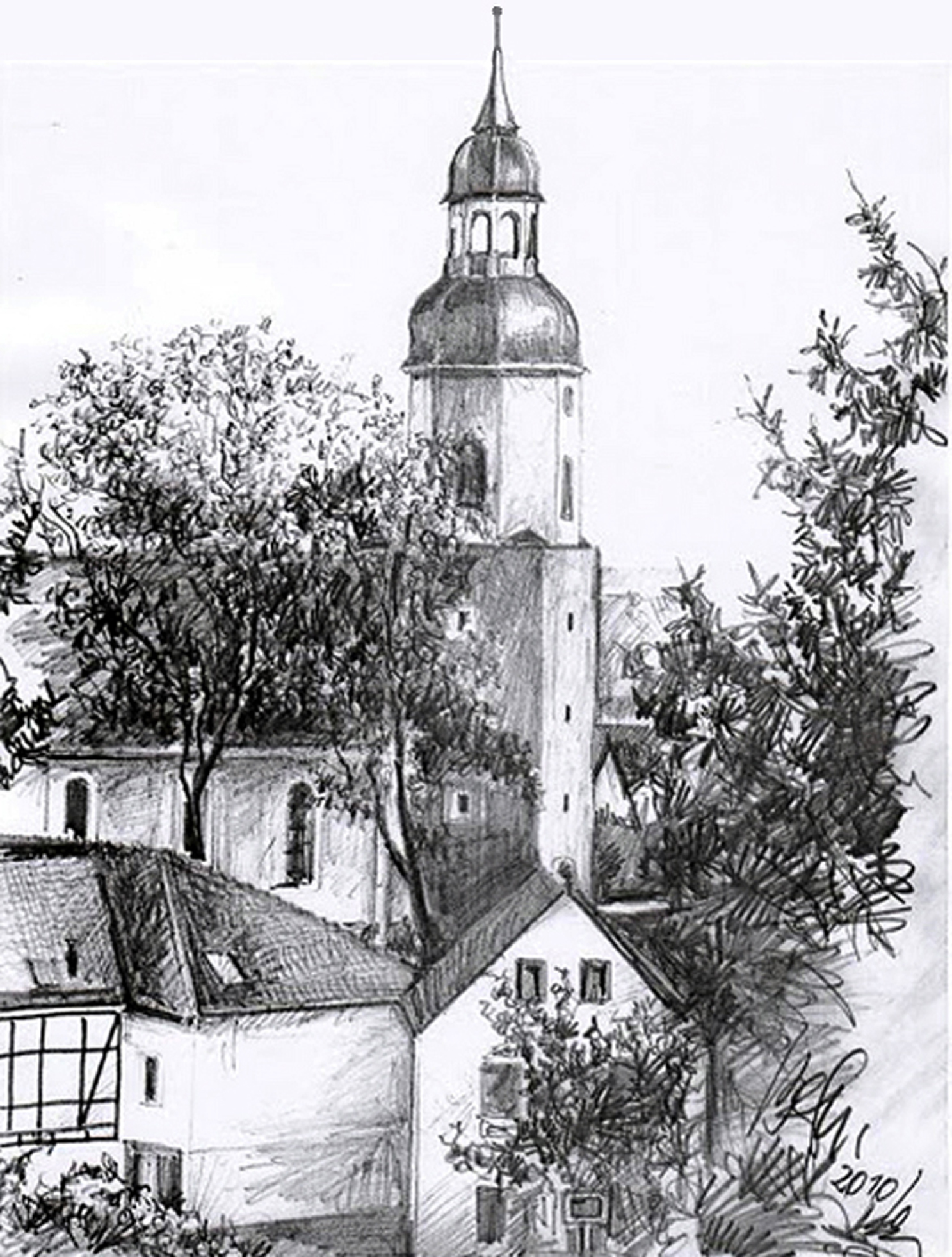 Kirche St. Andreas Gesau, Zeichnung von Bernd Schottstedt